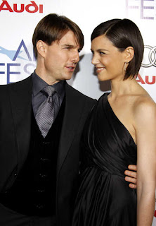 Katie Holmes sleek bob hairstyle with Tom Cruise